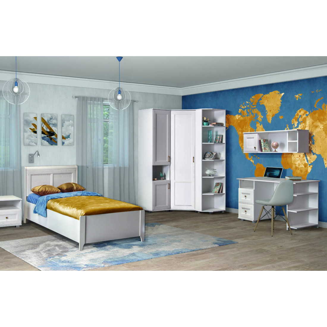 Корпус: ЛДСП, декор – белый. Основание кровати – ламели