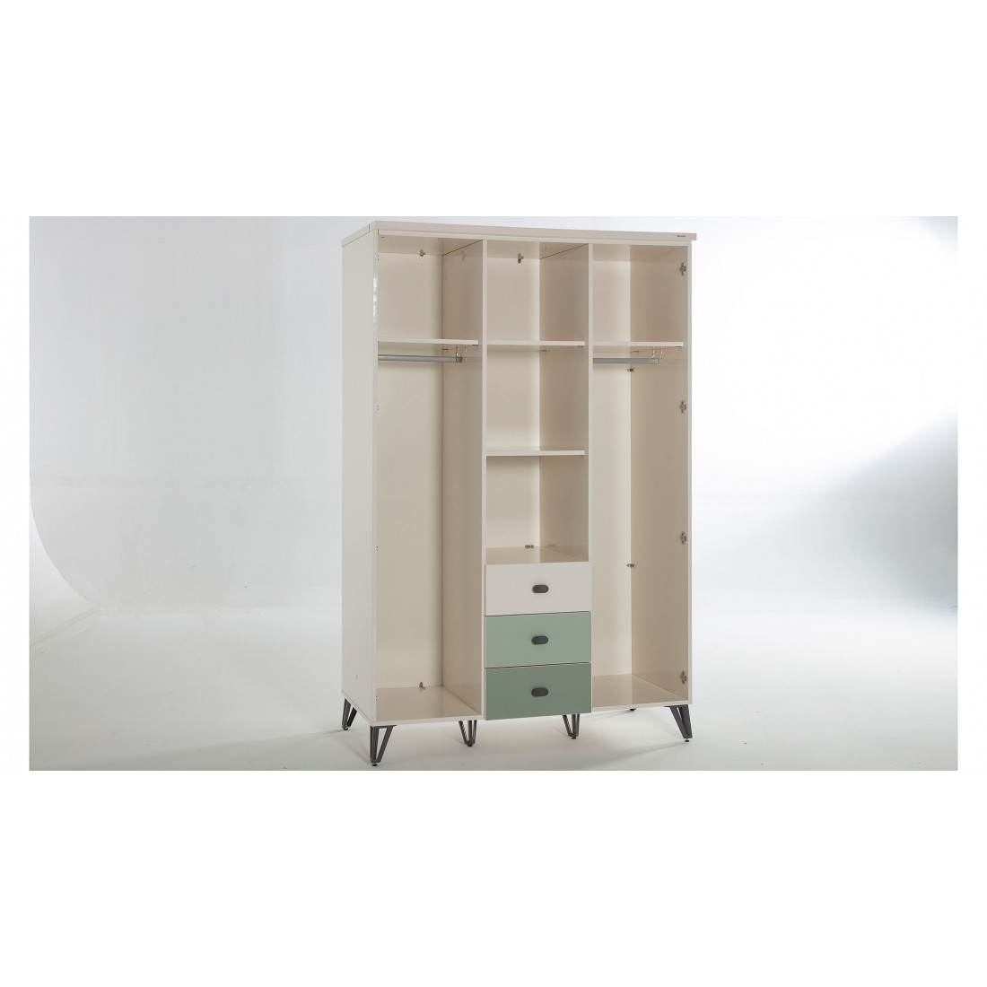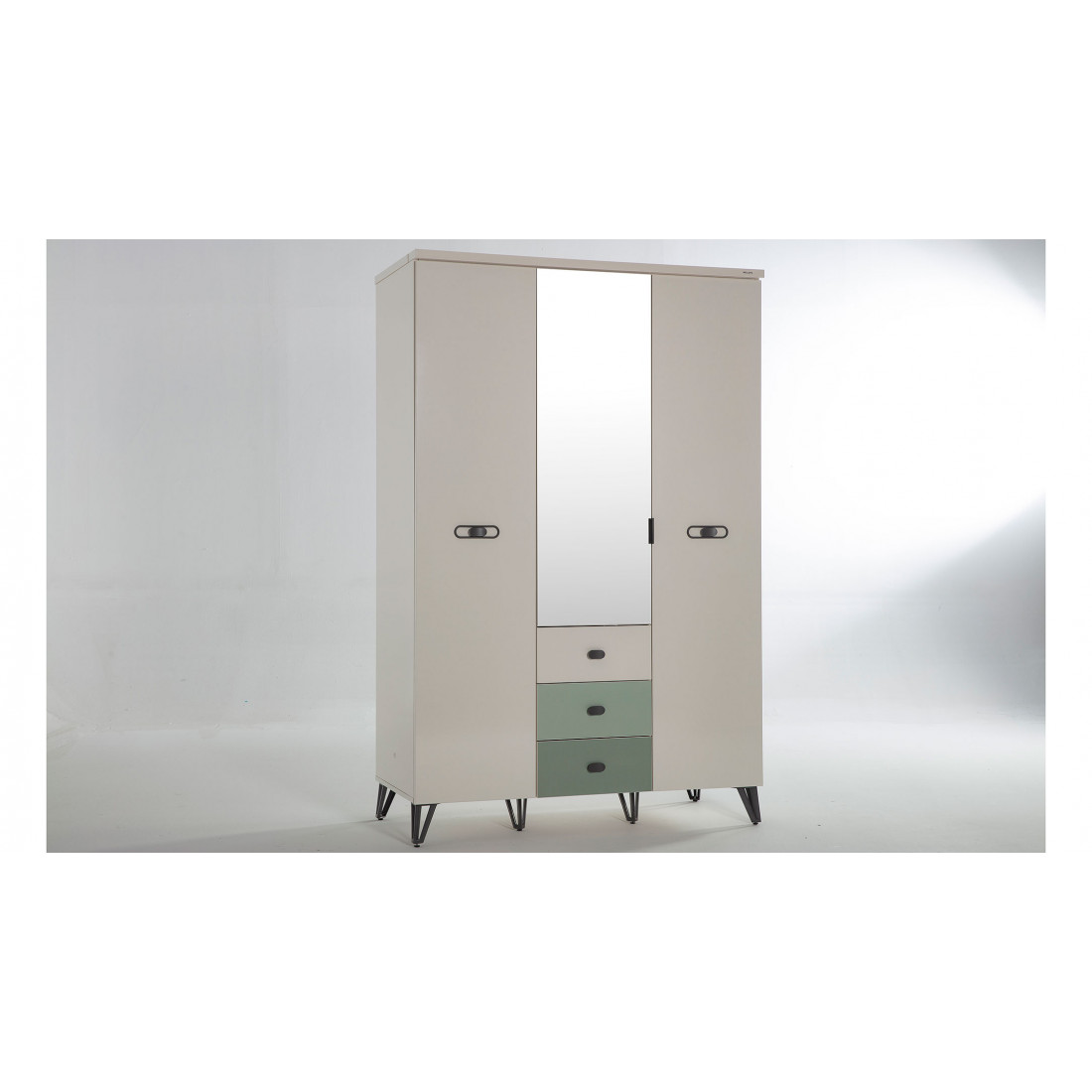 ВЕРХНИЙ ЯЩИК ЦВЕТА СЛОНОВОЙ КОСТИ, СРЕДНИЙ ЯЩИК СВЕТЛО-ЗЕЛЕНЫЙ,НИЖНИЙ ЯЩИК ТЕМНО-ЗЕЛЕНЫЙ.